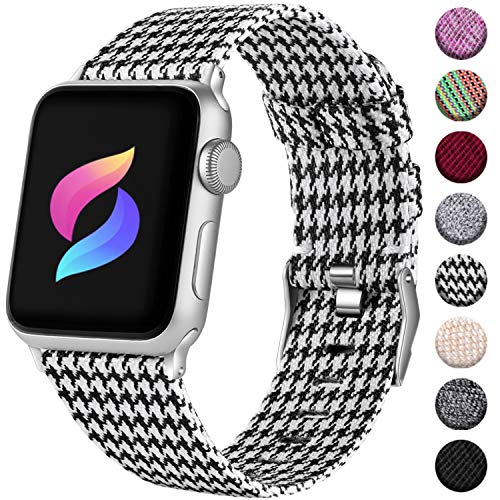 Haveda Fabric Band Compatible for Apple 4 Watch 44mm Series 4 Series 5, Fashion iwatch Bands 42mm Women Nylon Sport Wristband for Apple Watch Series 3, Series 2 1 Men Dressy Girls (White Grid)