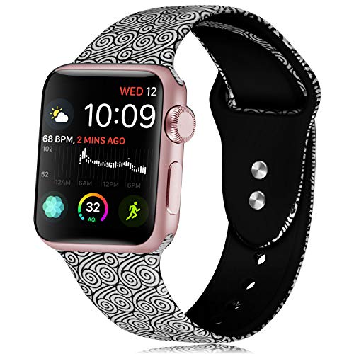 Haveda Floral Bands Compatible with Apple Watch Band 38mm 40mm, Soft Pattern Printed Silicone Sport Replacement Wristbands for Women Men Kids with iWatch Series 4 Series 3/2/1, S/M, Cloud