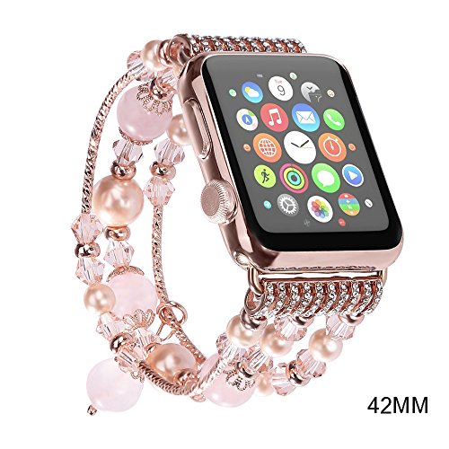 JOMOQ Compatible with Apple Watch Band, Fashion Sports Beaded Bracelet Replacement iWatch Strap Band for Women Girls, Apple Watch Series 38mm/42mm