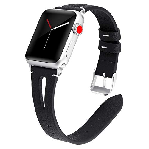 Kaome Leather Band Compatible for Apple Watch Band 44mm 42mm, Slim Elegant Strap, Women Replacement Bands for iWatch Series 5, Series 4, Series 3, Fashionable Feminine Breathable Slit Design-Black