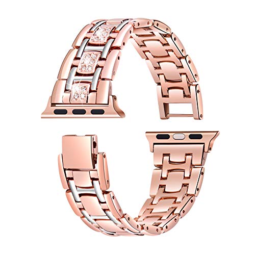 - 👑 GLITTERING AND STRIKING – 32 exquisite rhinestones are adorned on both sides of the rose gold apple watch band 42mm/44mm, when the light shines, you are the most eye-catching.
