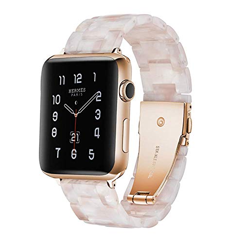 Light Apple Watch Band – Fashion Resin iWatch Band Bracelet Compatible with Copper Stainless Steel Buckle for Apple Watch Series 4 Series 3 Series 2 Series1 (Flower Pink, 42mm/44mm)