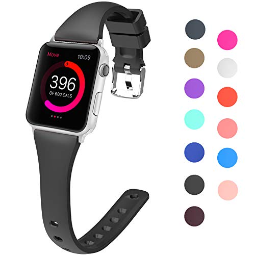 Lwsengme Compatible with Apple Watch Band 38MM 42MM 40MM 44MM, Choose Color-Slim Rubber Sport Bands for iWatch Series 4, Series 3, Series 2, Series 1