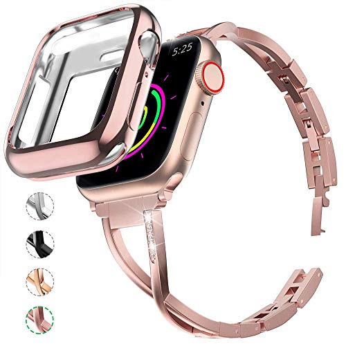 - 【Bling Design】: For 42mm/44mm Apple Watch band embed rhinestones that sparkle. The iWatch bands 42mm womens is slim and elegant to compliment a slender wrist, X-Shaped unique design with its thin and airy appearance will give your look a big boost.