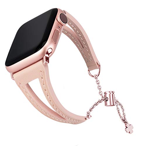Moolia Compatible with Apple Watch Band 38mm 40mm Leather Fashion Women Replacement Strap Breathable Triangular Hollow Metal Buckle Bracelet for iWatch Series 4/3/2/1 Pink (Pink, 38mm/40mm)