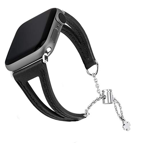 Moolia Compatible with Apple Watch Band 42mm 44mm Leather Fashion Women Replacement Strap Breathable Triangular Hollow Metal Buckle Bracelet for iWatch Series 4/3/2/1 (Black, 42mm/44mm)