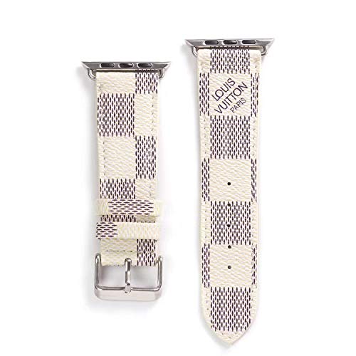 PU Leather iWatch Band Compatible with Apple Watch Band 42mm 44mm, Fashion Pattern Designed Premium PU Leather Band Strap with Stainless Metal Buckle for Apple Watch Series 4 3 2 1, White