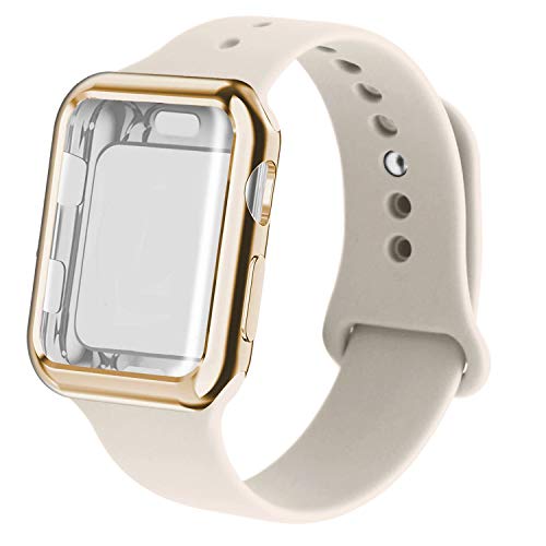 RUOQINI Smartwatch Band with Case Compatiable for Apple Watch Band, Silicone Sport Band and TPU Case for Series 4/3/2/1,Stone Band with Gold Case in 38ML Size