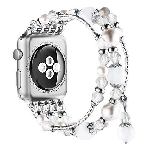 Simpeak Replacement iWatch Band Women Girl Fashion Beaded Elastic Bracelet Band Strap for 42mm 44mm Apple Watch Series 4 2018, Series 3, Series 2, Series 1, White