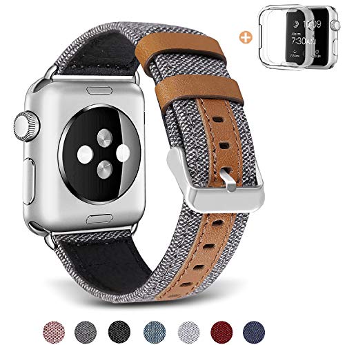 - PREMIUM MATERIAL: Our Straps for Apple Watch are made of superior quality Canvas Fabric and Genuine Leather materials, skin-friendly, retro and trendy, light and graceful, you can wear it at all hours of the day or night comfortably, nice choice for party, family reunion, business activities, etc..
