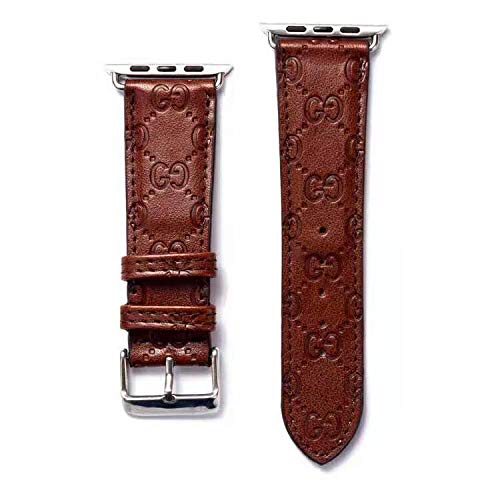 The ONE 42 Compatible Apple Watch Straps 42mm (fit for 44mm), Luxury Fashion PU Leather Classic Wrist Bands for Women and Men, Replacement for 42/44MM Apple Watch Series 4 3 2 1 (Brown)