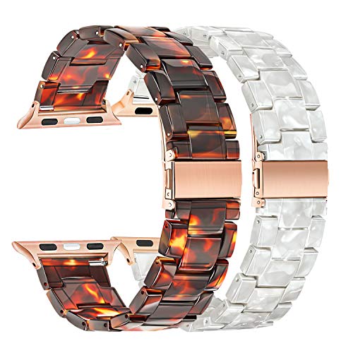 - HAND POLISHED&SUPERB MATERIALS: Each piece of resin is slowly polished by the experienced artificers. Combined with premium Resin (tortoise-tone and pearl-tone) and rose gold stainless steel fold-over clasp with double push button safety closure, it offers a new bracelet look to your Apple watch. Lighter than stainless steel metal band. Extreme Lightness makes it very comfortable to wear, and besides skin-friendly.