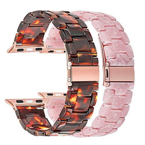 - HAND POLISHED&SUPERB MATERIALS: Each piece of resin is slowly polished by the experienced artificers. Combined with premium tortoise-tone Resin and 316L stainless steel fold-over clasp with double push button safety closure, it offers a new bracelet look to your Apple watch. Lighter than stainless steel metal band. Extreme Lightness makes it very comfortable to wear, and besides skin-friendly.