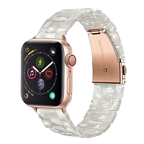 - HAND POLISHED & SUPERB MATERIALS: Each piece of resin is slowly polished by the experienced artificers. Combined with premium pearl-tone resin and silver stainless steel fold-over clasp with double push button safety closure, it offers a new bracelet look to your Apple watch. Lighter than stainless steel metal band, and the extreme lightness makes it very comfortable to wear, and besides skin-friendly.