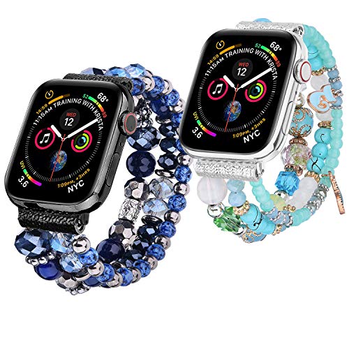 V-MORO Bracelet Compatible with Apple Watch Bands 44mm/42mm Women Fashion Handmade Elastic Stretch Beads Strap Replacement for iWatch Series 4/3/2/1 42mm/44mm 2 Pack Blue