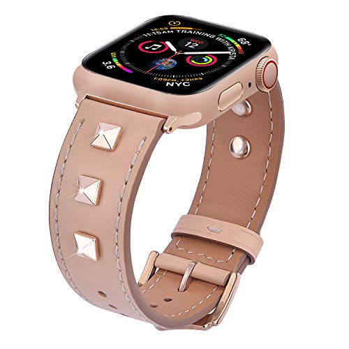 VIGOSS Leather Bands Compatible with 40mm Apple Watch Band 38mm Women Fashion Bling Rivets Strap Replacement for iWatch Series 4/3/2/1 with Rose Gold Buckle(Beige, 38/40)