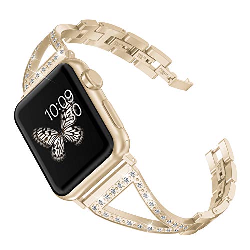 Wearlizer Bling Compatible with Apple Watch Band 42mm 44mm Womens iWatch Straps Beauty Jewelry Rhinestone Wristband Stainless Steel Luxury Bangle Replacement Metal Bracelet 4 3 2 1-Champagne Gold