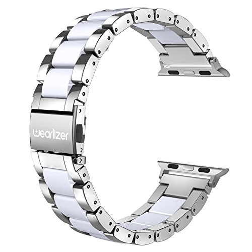 Wearlizer Silver Compatible Apple Watch Band 38mm 40mm Fashion Womens Mens iWatch Wristband Stainless Steel Strap White Resin Replacement Bracelet Sport Cool Metal Clasp Series 4 3 2 1 Sport Editio