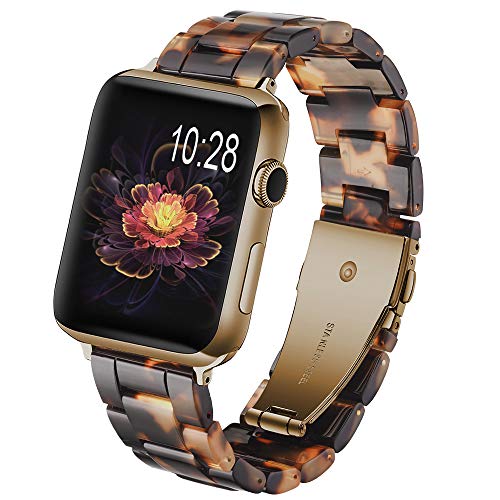 - APPLE WATCH RESIN BANDS – Compatible with 38mm 40mm Apple iWatch Series 4, Series 3, Series 2, Series 1, Sport, Hermes, Nike+, Edition, all 2015 and 2016 models. Fits the size of wrist: 5″-7.67″ wrist. Find a special gift to your family or friends? Apple Watch Tortoise Sheel Resin +Rose gold Metal Bands 42mm will be a best gift