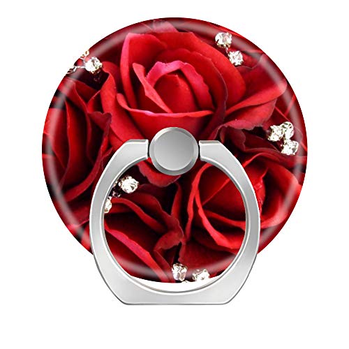 adde 360 Degree Rotation Cell Phone Ring Socket Grip Holder Finger Pop Stand with Car Mount Work for All Smartphone and Tablets – Bling red Rose and Diamonds Print