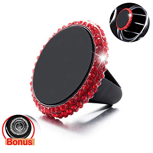 Alusbell Crystal Magnetic Car Air Vent Mount Holder Cradle for Cell Phones and Mini Tablets,GPS,ETC.Bling Bling Car Interior Decoration for Women (Red)