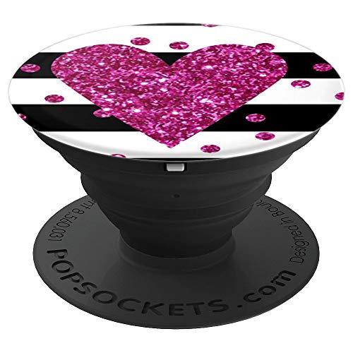 - Lovely Fashion black white stripes pink bling love heart art pop socket for girls pop phone stand for women cell phone holder for teen girls.
