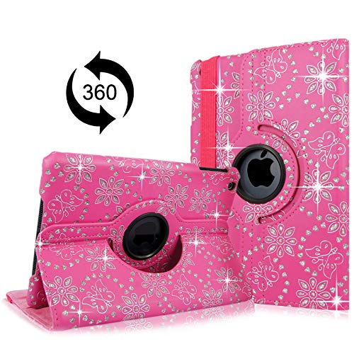 Cellularvilla Case for Apple iPad Mini 1 (2012) 7.9â€â€ and Mini 2 (2013 Edition) 7.9â€â€ Retina Display 360 Degree Rotating Pink Glitter Pu Leather Flip Folio Stand Cover with Auto Wake/Sleep Feature