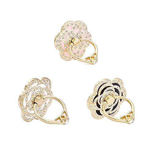 - 【RING PHONE GRIP FLOWER DESIGN】When purchasing this product, you can set of 3 flower rose finger ring holder with different colors(Pink,White,Black).Finger Ring Stand is made of Aluminum Metal with 3D Bling diamond,The Bling stand design looks perfect!