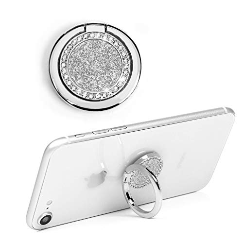 KASOS Phone Ring Stand Holder, Crystal Bling Glitter Sparkle Diamonds Rhinestone Gem Universal 360 Degree Rotation Smartphone Finger Ring Kickstand Grip Holder for Any Smartphones and Tablets – Silver