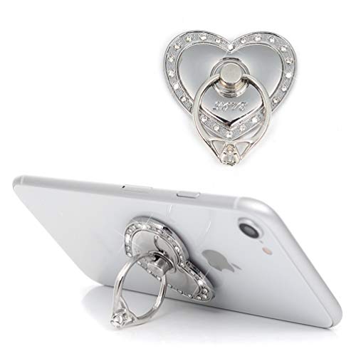 KASOS Phone Ring Stand Holder, Crystal Bling Glitter Sparkle Diamonds Rhinestone Gem Universal 360 Degree Rotation Smartphone Finger Ring Kickstand Grip Holder for Any Smartphones and Tablets – Silver