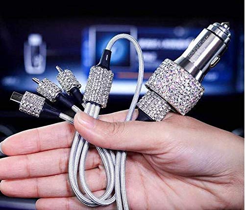 TISHAA Bling Dual USB Car Charger For Mobile PhoIf you are looking for a whimsical dual USB charger for your car that can add a little bit of sparkles, this is it. You found the right product. This bling luxurious USB charger will be the perfect item for you! It is decorated with gorgeous dazzling crystals and rhinestones all around and you don’t need to worry about crystals falling out. It is slim, lightweight, and well-constructed so durability is ensured. It is a set of one port and two USB chargers. You can charge your phone, iPad, and Air Pods very fast with this lovely charger. This sparkling USB charger is available in two different styles, white and gold. This delicate charger will brighten up your car. It will be a perfect gift for yourself and for your loved ones. You will never find the same product in the market.ne Tablet GPS Fast Charger Crystal Diamond Phone 3 Data Line Wire in Car Cigarette Lighter