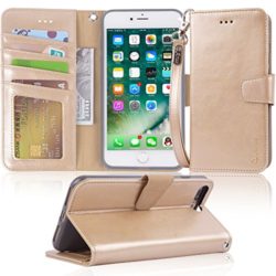 Premium Synthetic Leather Wallet Case, Precisely Design for iphone 7 plus (2016) / iphone 8 plus (2017).Build in Card Pockets to Conveniently Store ID, Credit Cards & Cash.Kickstand Feature