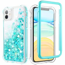 Caka Protective Case for iPhone 11 Glitter Case Liquid Full Body Shockproof for Girls Women Bling Shining Love Flowing Floating Luxury Heavy Duty Clear Phone Case for iPhone 11 (2019)(Teal)