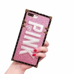 Luxury Embroidery 3D Pink Letter Case for iPhone Glitter Metal Square Cases Pink for iPhone 7plus