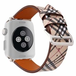 Coholl 38/40mm Tartan Plaid Style Replacement Strap Wrist Band with Metal Adapter Compatible for Apple Watch Series5 4 3 2 1 Soft PU Leather Pastoral/Rural Style 42/44mm (E, 38/40mm)