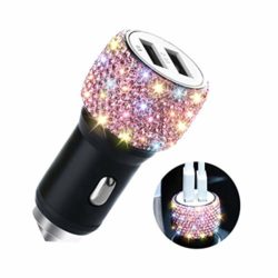 Car Charger: A. 2 USB Port:Dual USB Port charge two devices simultaneously at same time. B. Charger and charging cable with rhinestones, sparkling and more stylish. C. Special stainless