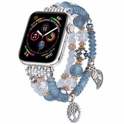 V-MORO Bracelet Compatible with 40mm Apple Watch Band 38mm Women Fashion Handmade Elastic Stretch Beads Bands with Silver Stainless Steel Adapters Strap for iWatch Series 4/3/2/1 38mm/40mm Blue