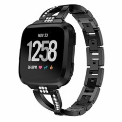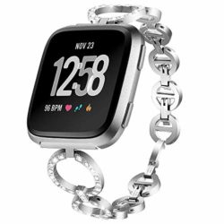 Unique Aiiko O-Link Fashion Design Stainless Steel Metal Replacement Smart Watch Band Link Bracelet with Crystal Rhinestone Diamond Bling for Fitbit Versa Made of premium stainless steel. Convenient Removable