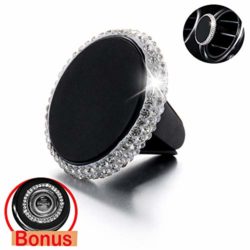 Alusbell Crystal Magnetic Car Air Vent Mount Holder Cradle for Cell Phones and Mini Tablets,GPS,ETC.Bling Bling Car Interior Decoration for Women (Black)