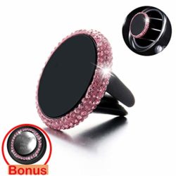 Alusbell Crystal Magnetic Car Air Vent Mount Holder Cradle for Cell Phones and Mini Tablets,GPS,ETC.Bling Bling Car Interior Decoration for Women (Pink)