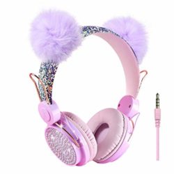 Features: (a)Cute bear ear design for kids headphones: The colorful cat ears/unicorn/bear ear headband headphones can attract kids attention and showing innocence and loveliness of a child. (b)Adjustable Headband:This