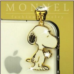 1. 100 % Brand New . Fashionable & attractive Mobile Phone Charm Plug.2.The measurement: approx. 2.2 cm (H) x 3.2 cm (W) x 0.25 cm (D). 3.Snoopy With Golden