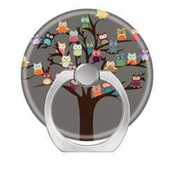 360 Degree Finger Stand Cell Phone Ring Holder Car Mount with Hook for Smartphone-Cute owl on Tree Background