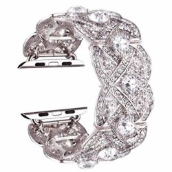 Viqiv Crystal Rhinestone Replacement Band for Apple Smart Watch Series 4, 3, 2, 1 Made of high quality Alloy. 5 Color: Green, Red, Silver, Black, Rose Gold The rhinestone