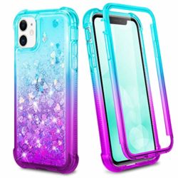 Ruky iPhone 11 Full Body Rugged Glitter Liquid protective Case for Women Girls. Soft TPU glitter back cover with hard frame built in screen protector, provides 360°full body protection,