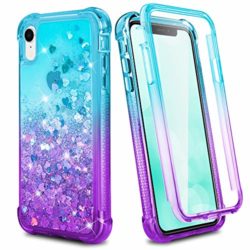 Ruky iPhone XR Full Body Rugged Glitter Liquid Phone Case for Women Girls. Soft TPU glitter back cover with hard frame built in screen protector, provides 360°full body protection,