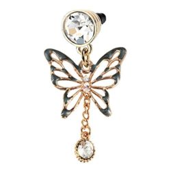 Elegant Black Butterfly Crystal Dangle Phone Charm Anti Dust Plug in Monnel Velvet Bag MP763