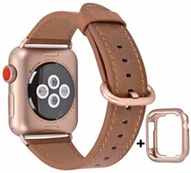 JSGJMY Compatible for Iwatch Band 38mm 40mm S/M Women Genuine Leather Loop Replacement Strap for iWatch Series 5 4 3 2 1, Camel with Series 5/4/3 Rose Gold Clasp
