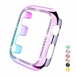 Zekapu Compatible with Apple Watch Case 42mm, Colorful Bling Diamond Bordered iWatch Protector for Series 3/2/1