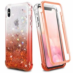 Ruky iPhone Xs Max Full Body Rugged Glitter Liquid Phone Case for Women Girls. Soft TPU glitter back cover with hard frame built in screen protector, provides 360°full body